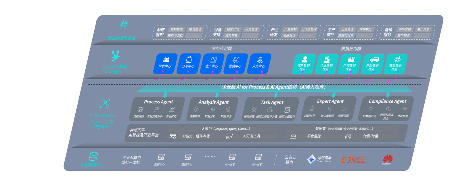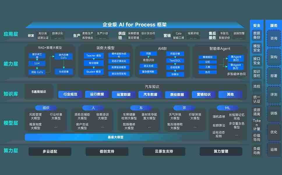 端到端的一站式AI工作空间深度融合了从企业战略规划到日常经营的全流程业务板块,,,,定向解决车企内部领域多、、部门多、、、、链条长、、、、场景碎片化等难题,,,支持车企快速构建以AI为核心的生产力写作体系,,,,实现任务执行与AI能力的无缝集成与交互